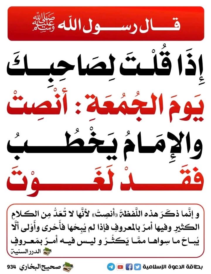 Say someone "Be silent" is considered as worthless during the khutbah of Zumuyah